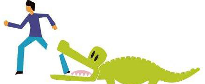 假设一只鳄鱼咬住你的脚,如果你用手去试图挣脱,鳄鱼便会同时咬住你的手,愈挣扎,就被咬住得越多。所以,万一鳄鱼咬住你的脚,唯一的办法就是牺牲一只脚。鳄鱼法则就是指要及时止损,顾全大局。