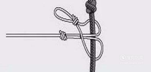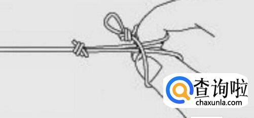接着线圈折叠成一个小圈,让下方的双线夹在上方的双线中间。这里操作时一定要注意,确保把上面鱼线结成的小圈套入鱼竿的线头;