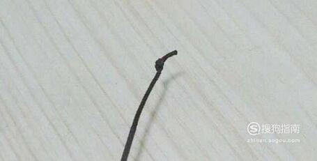 然后从手从太空豆的一端操作,要把鱼线拉紧;将太空豆往上推,因为太空豆需要去固定线结,使线结不松散。