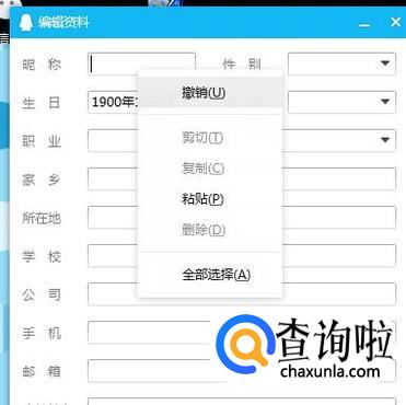 接着来到QQ资料的编辑界面,将原有的昵称删除并点击粘贴,如下图所示。