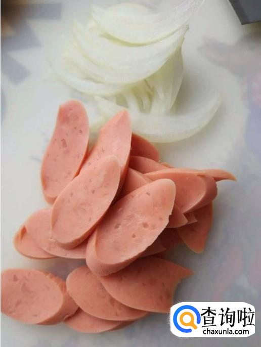 方便面、火腿肠、菠菜、洋葱、盐、鸡粉、酱油、蚝油。