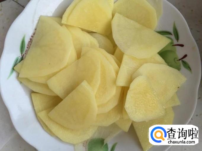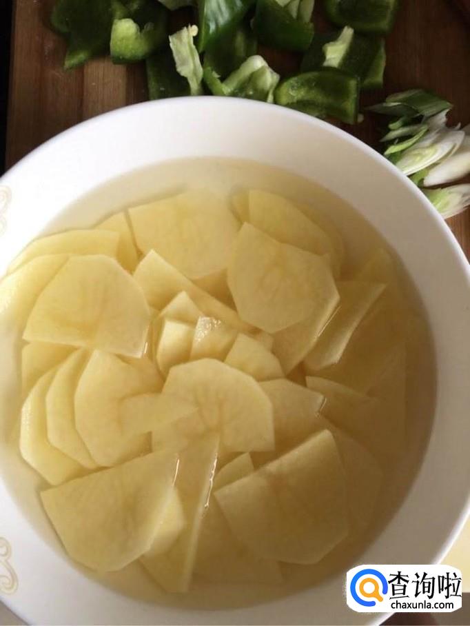 切土豆片时注意不要切太厚,薄厚根据自身喜好来定,当然切的越薄熟的也快。如果喜欢吃清脆的土豆片,那就一定要用水泡一下去土豆淀粉,如果喜欢吃软面的就不用泡水。