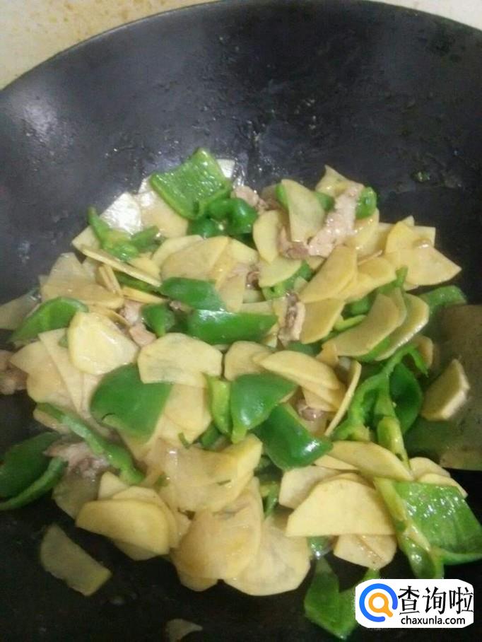 放入辣椒后翻炒,加适量盐关火,这样好吃的土豆片就完成了,我们这时可以把美味的土豆片盛入盘中,此菜色、香、味俱全还营养全面。