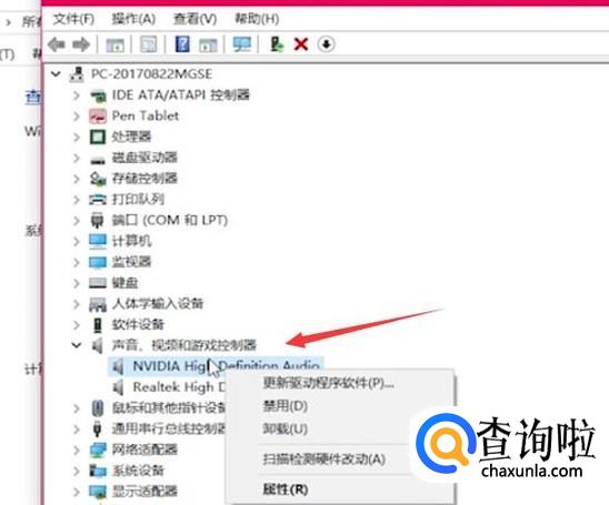 打开“声音、视频和游戏控制器列表”,右键列表中的驱动,若被禁用则重新启用即可。
