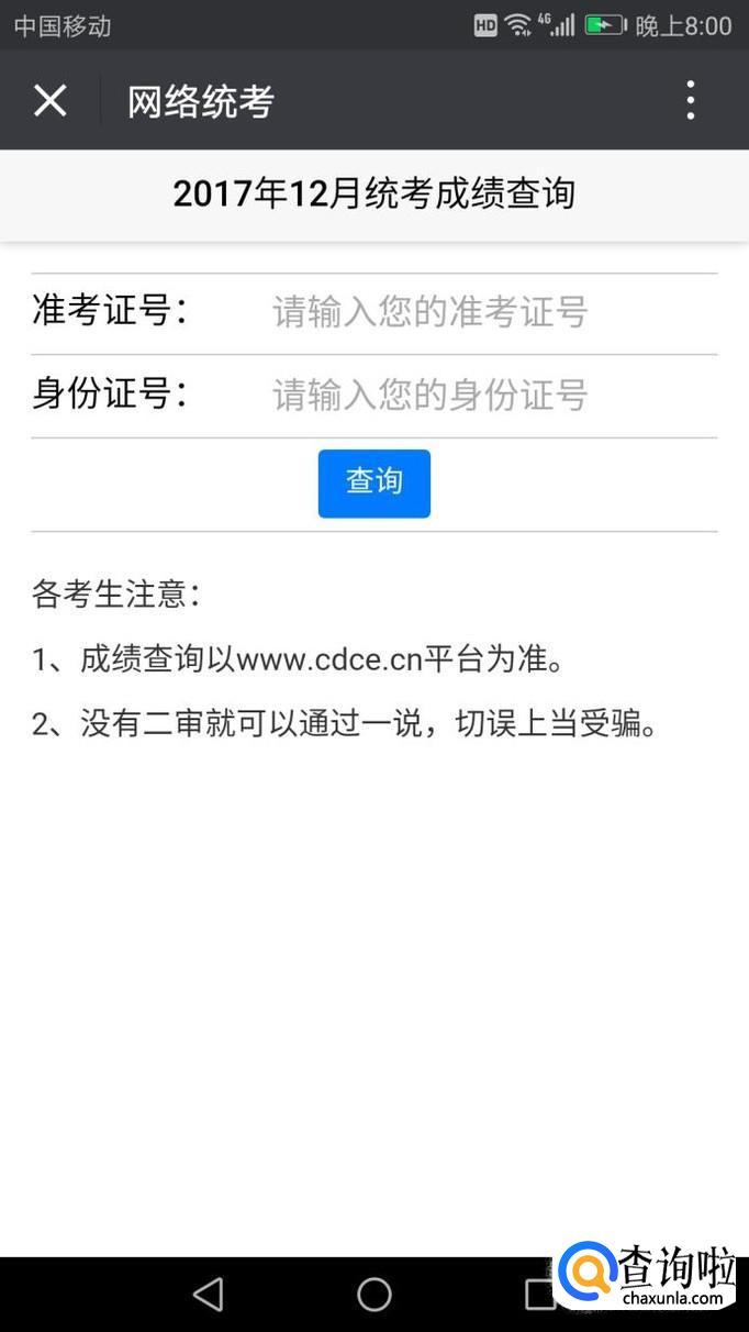 最后输入自己的准考证号和身份证号就可以查询成绩了。