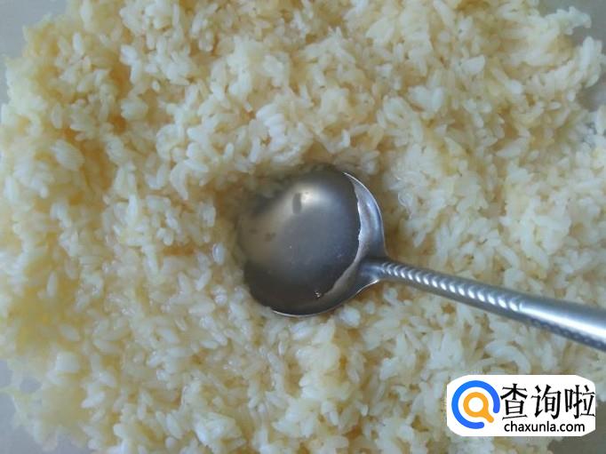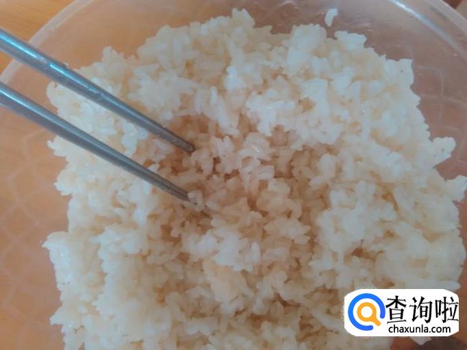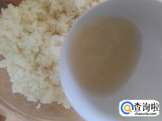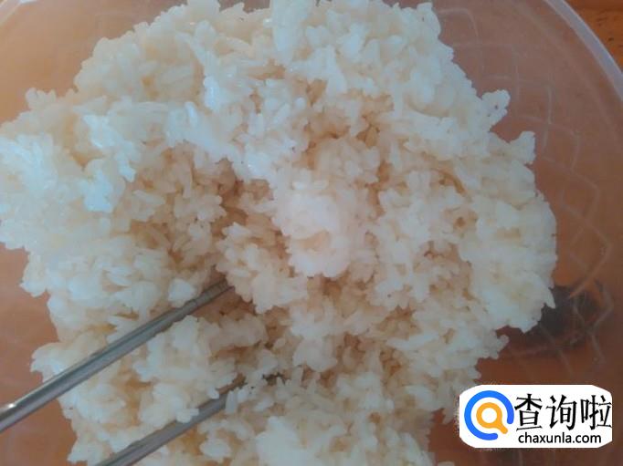 拿出来倒到干净的盘子用筷子划松散糯米饭。【做甜酒的过程用的工具都不能沾有油】