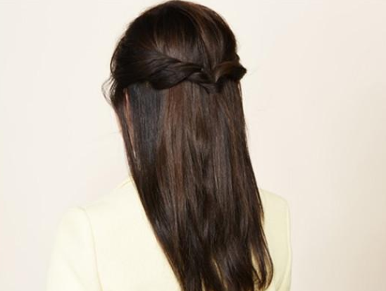 正值花样年华的初中女生最适合梳齐刘海发型了,将齐眉刘海往一边梳理,露出小部分额头,这样显得女生清新大方一些,前面的直发向后梳理半扎成公主头发型,简简单单的半扎发就能将初中女生打造成美萌少女。