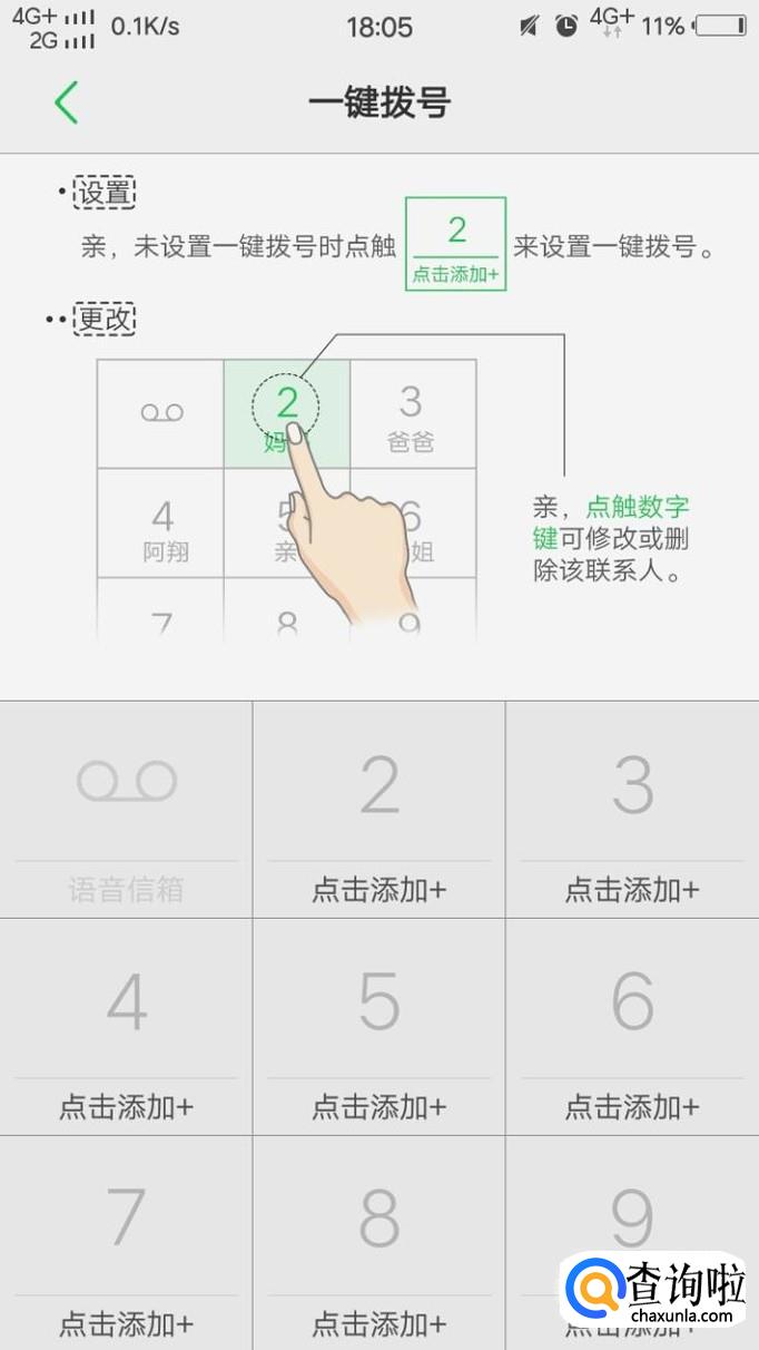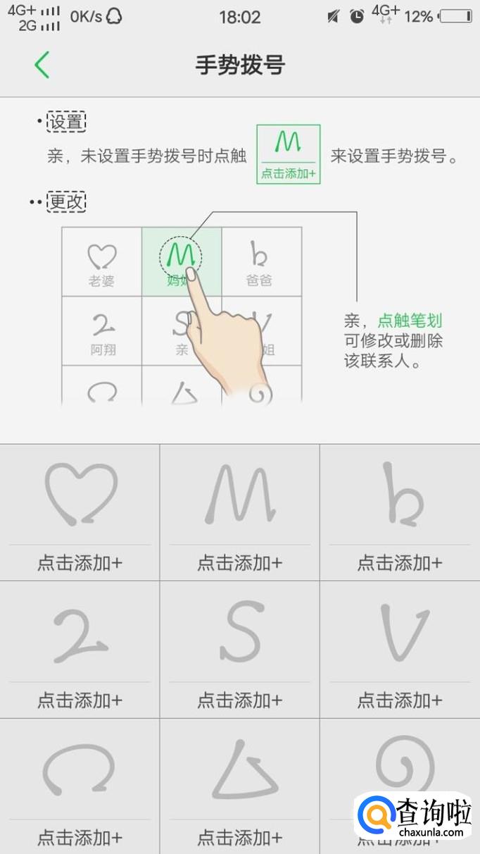 最后,我们点击“一键拨号”,在相关的数字处点击添加相关的人的电话即可。手势拨号也是相同的设置方法,在相关的符号处点击添加相关的人的电话号码。