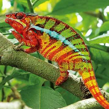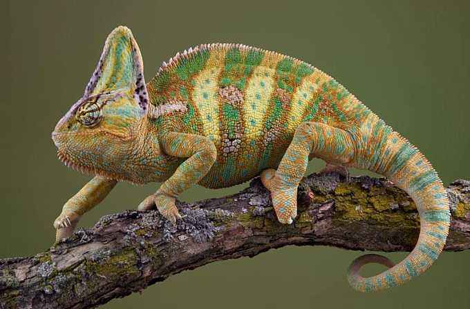 变色龙就是因为它善于随环境的变化,随时改变自己身体的颜色。变色既有利于隐藏自己,又有利于捕捉猎物。变色这种生理变化,一种说法是在植物性神经系统的调控下,通过皮肤里的色素细胞的扩展或收缩来完成的,另一种说法是在最近的研究中发现,变色龙不是靠色素细胞变色,而是靠调节皮肤表面的纳米晶体,通过改变光的折射而变色的。