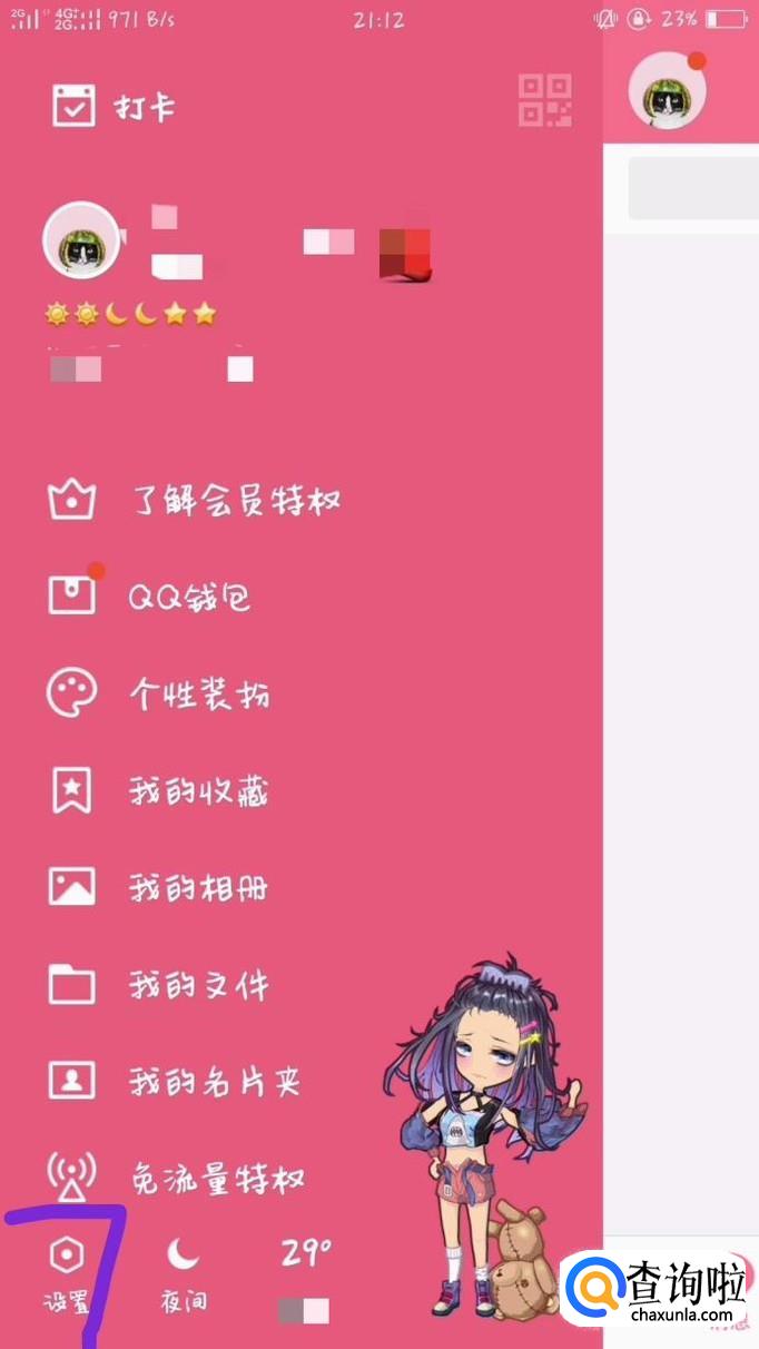 进入QQ过后,右滑屏幕,进入QQ的相关设置。