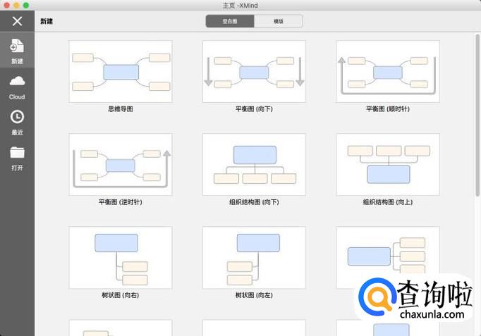 打开电脑中的Xmind思维导图软件,按ctrl+n新建导图文件,选择不同的样式。