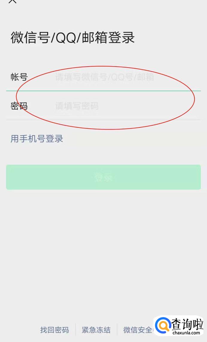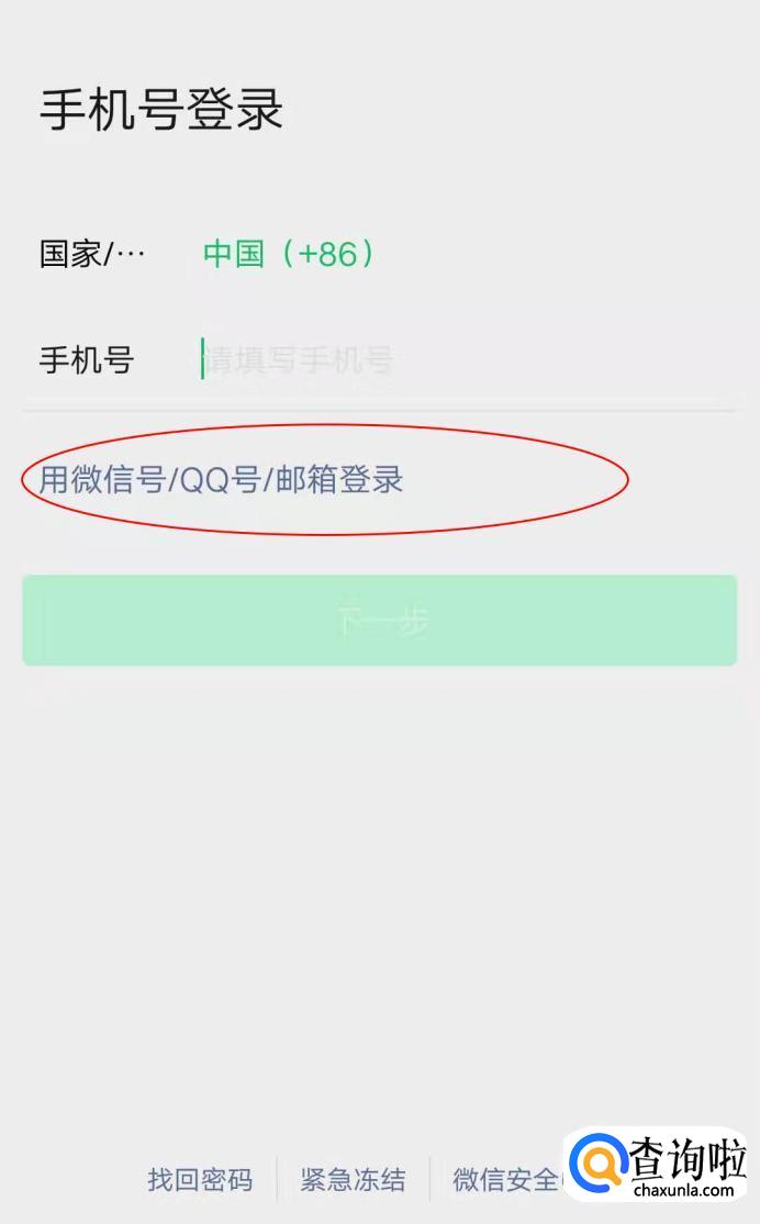 首先打开微信,不要使用手机号登录,切换到“用微信号/QQ号/邮箱登录”。