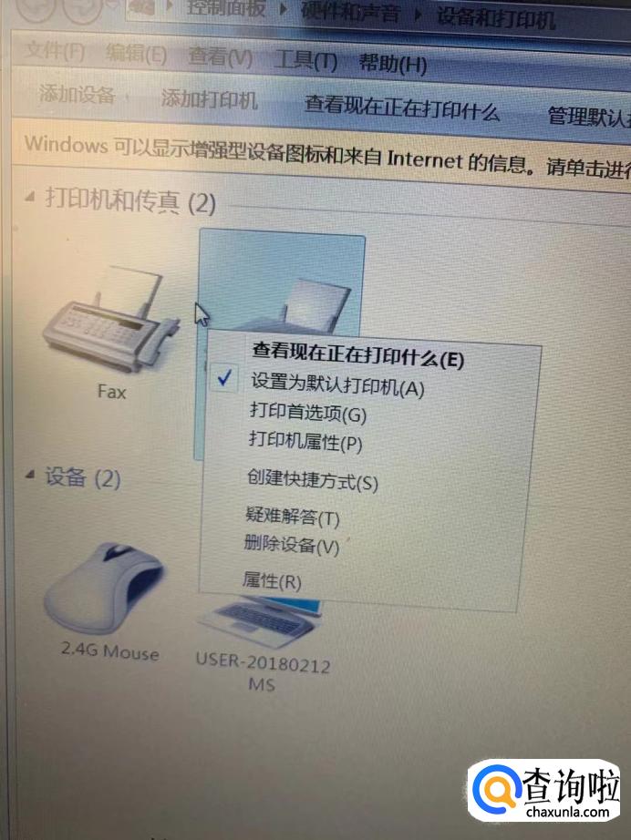 你如果发现你的打印机有一个感叹符号说明连接出错了,删除它就好了。
