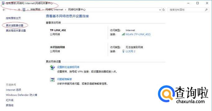 唤出"网络和共享中心"选项界面,如图所示。点击左侧"更改适配器设置"图标,下步将进行实现待机不断网的操作。