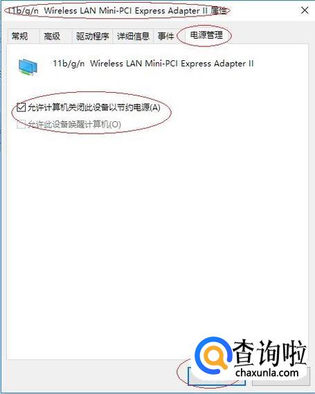 如图所示,取消勾选"电源管理→允许计算机关闭此设备以节约电源"复选框。完成实现待机不断网的操作,本例到此希望对大家能有所帮助。