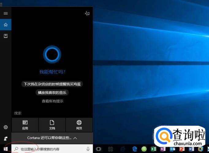 启动Windows 10操作系统,如图所示。点击任务栏搜索框,开始使用Cortana(小娜)智能语音助理。