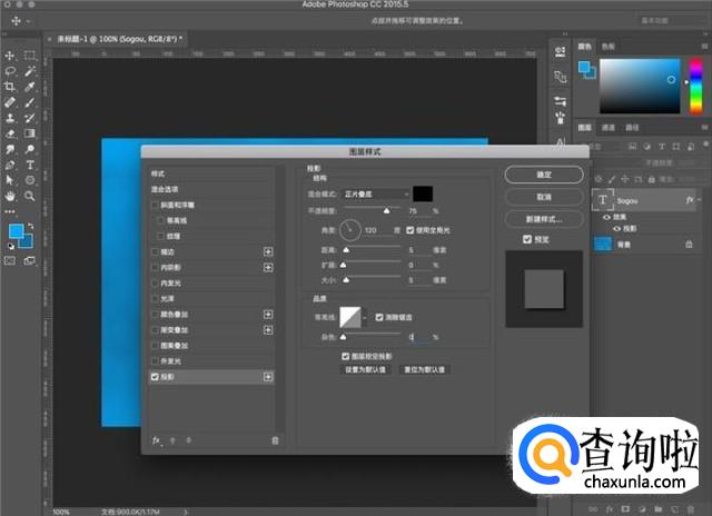 双击文字图层,添加正片叠底模式的投影。