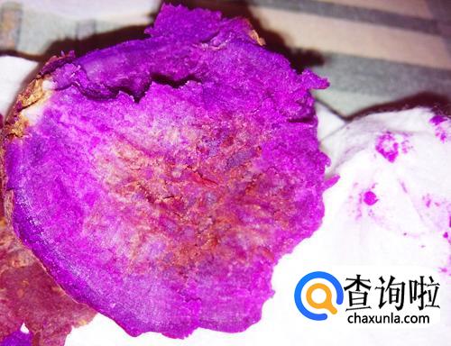 染色紫薯因为品种的缘故,通常口感存在着较大差异,比如有的紫薯是红皮白薯然的,那么紫薯就会显得特别干,不面,没有水分,口感吃起来差。有的染色紫薯做的比较逼真,从外表和果肉都看不太出来,但是用纸巾一擦会出现墨水一样绿色的东西。有的染色紫薯煮完之后,切开果肉会有一层黑黑的,吃起来苦涩怪异,如下图,用刀切开,结果水果刀上也沾上了一层墨黑色的脏东西。