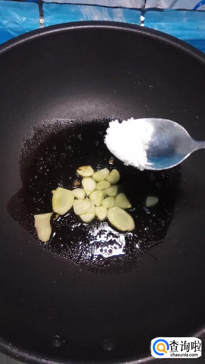 炒锅中放入适量油,油热后,将蒜片和姜片放入锅中炒香,然后加入一勺白砂糖,炒出糖色。