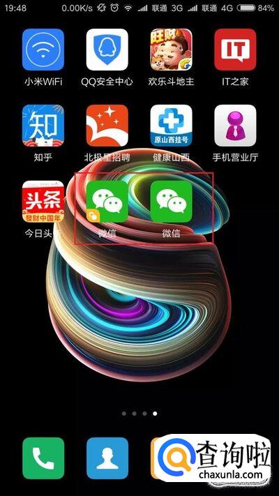接下来,我们返回到桌面上,可以看到桌面上已经有两个微信应用图标了,其中一个图标多了一个双开标志。