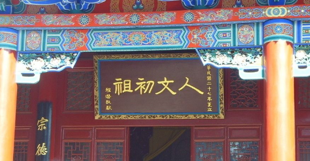 于今陕西黄陵县桥山,被誉为中华民族的人文初祖。1938年四月五日清明节,国民党元老、爱国将领程潜前往黄帝陵祭陵时题写“人文初祖”隶体匾额。现悬挂于黄帝陵轩辕庙大殿门楣上,为黄帝陵一景。从古至今,每年清明节,都有不少海内外同胞前往祭拜。