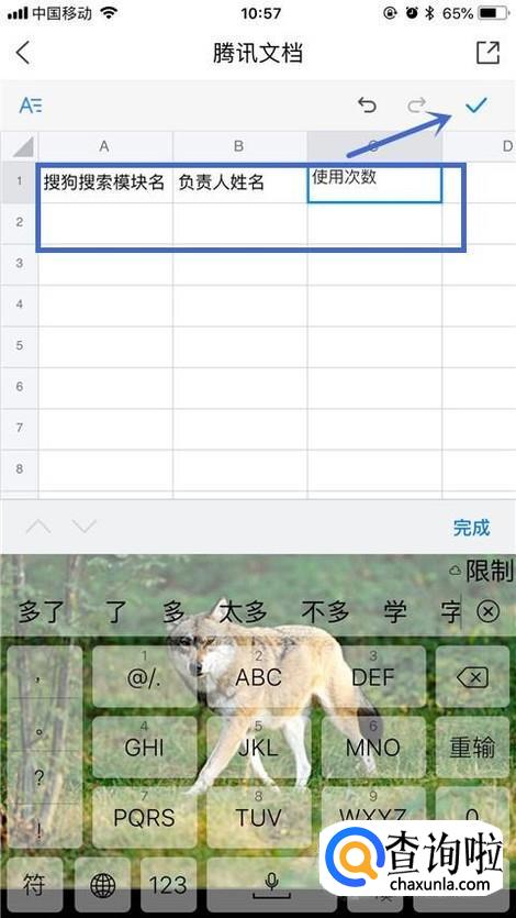 然后输入表格的内容并点击屏幕右上方的“√”,如下图所示。