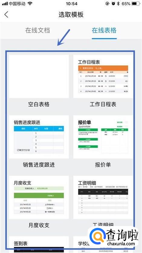 然后选择模版或者是空白表格进行制作,如下图所示。本文以空白表格为例。