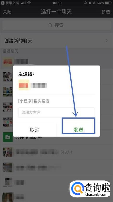 最后选择你要的好友发送就可以了。这样操作完成,你和你的好友都可以共同编辑这个文档了。