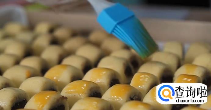 之后把圆条切成均匀大小,刷上蛋黄液撒上黑芝麻。