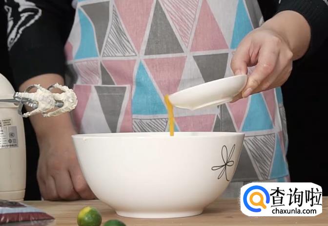 再向碗中打入糖粉,打至发白蓬松。