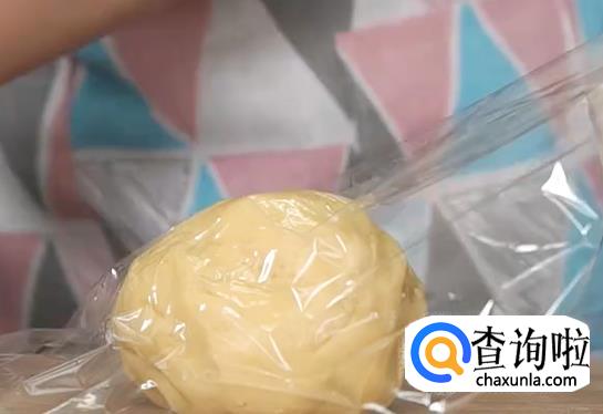 之后把面团用保鲜膜裹起来,放冰箱冷藏一个小时左右。