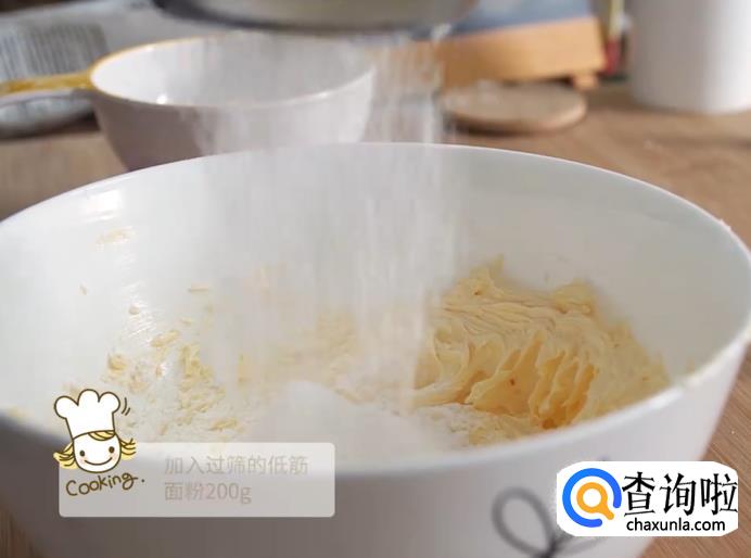 加入过筛的低筋面粉,搅拌混合揉成团。