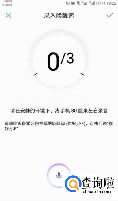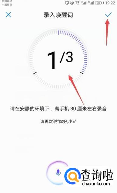 然后我们可以看到我们录音成功了一次,一共录音三次,成功后,我们点击勾选按钮,之后我们就可以使用语音唤醒功能来唤醒我们的手机了。