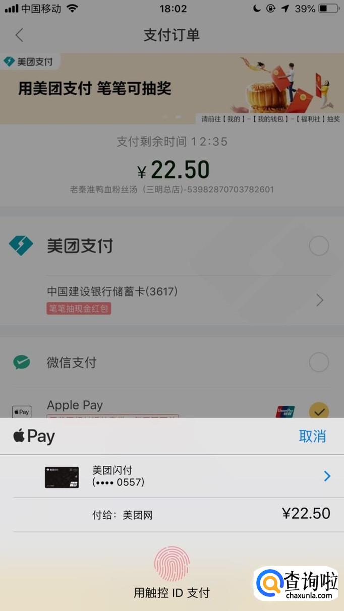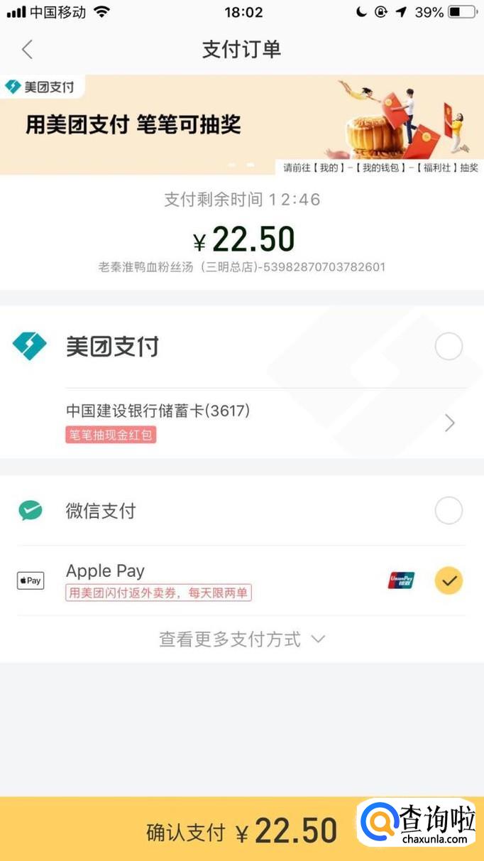 然后选择美团云闪付并点击确认支付,如下图所示。
