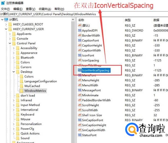 接着找到IconVerticalSpace选项,同样的双击此选项,如下图所示