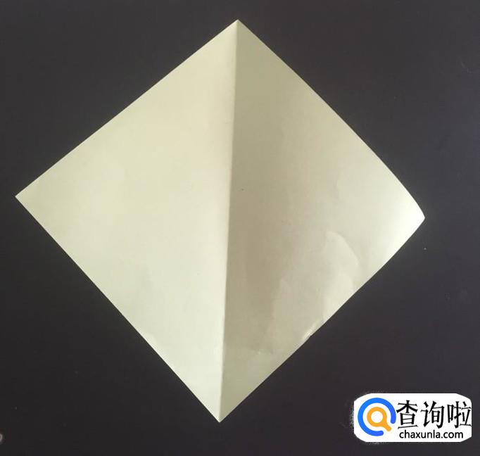 准备一张正方形卡纸,沿着其中一条对角线方向对折并展开。