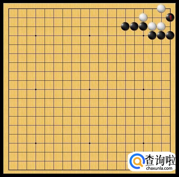 黑棋先行,鉴于白棋已经抢占了右上角左边底线位置,黑棋也就在黑1处打入,抢占了白棋右上角右边底线位置,避免白棋在右上角做起一个眼位。如图所示。