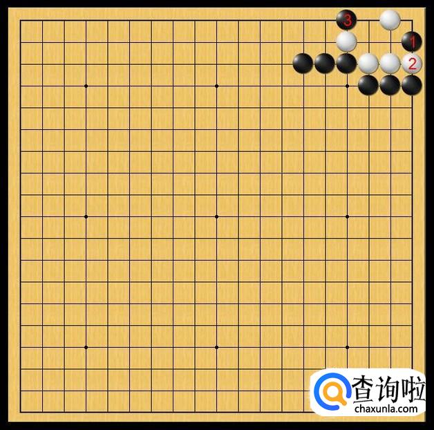 黑棋随即在黑3处落子,黑3位于白棋底线且被白子压制,随时都会被白棋打吃掉。对于黑3的落子,很是不解。但实战中,黑3是取得黑棋胜利的关键,是步妙棋。如图所示。