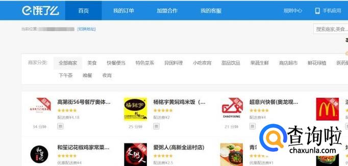进入饿了么主页,可以看到有很多商家