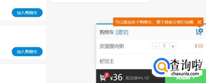 根据自己的喜好,选择想要购买的食品,在右下角就会出现一个购物车