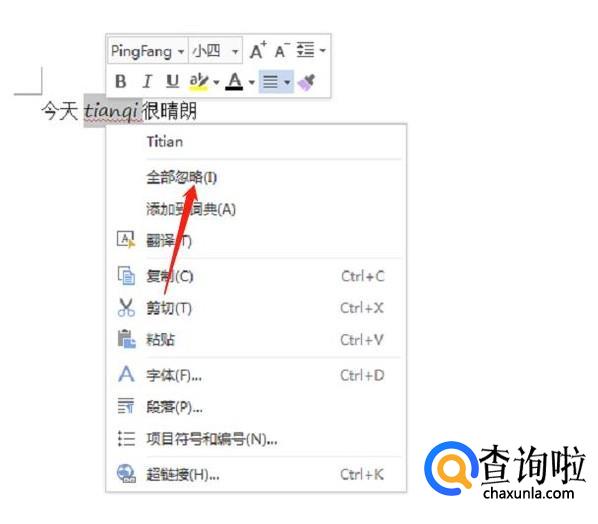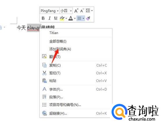 还有一种方法是,选中需要删除波浪线的文字后右击,点击“添加到词典”