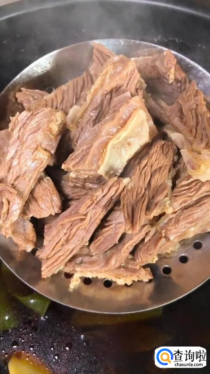 然后把煮好的牛肉捞出沥干,如下图所示。