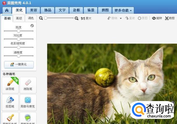 用美图秀秀画笔中的抠图笔把需要的部分抠出来,然后保存成图片。
