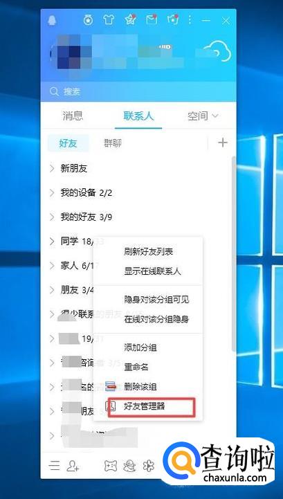 弹出的界面,我们点击好友管理器;