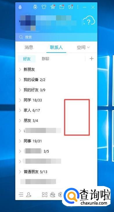 首先,我们打开我们电脑上面的QQ,然后我们右击联系人界面的空白处;