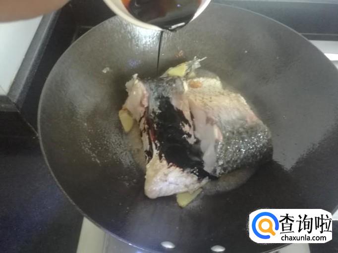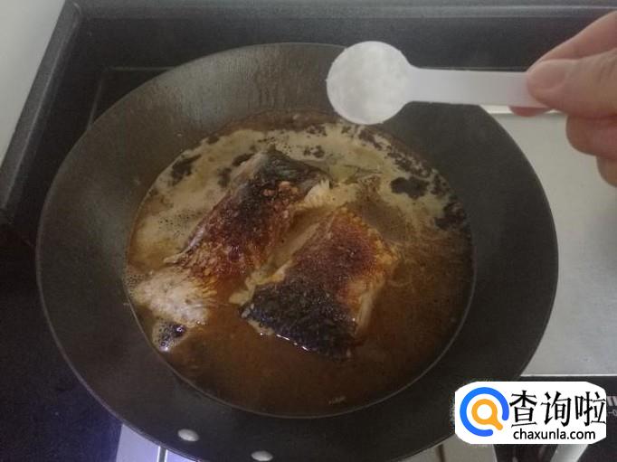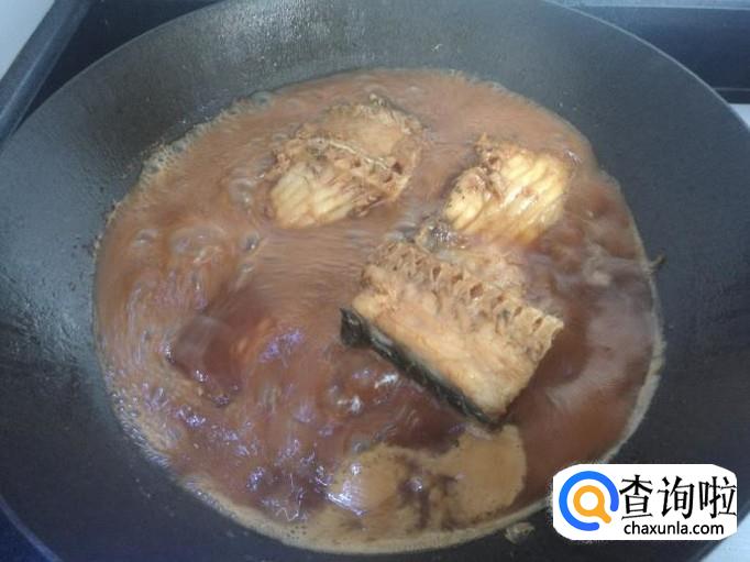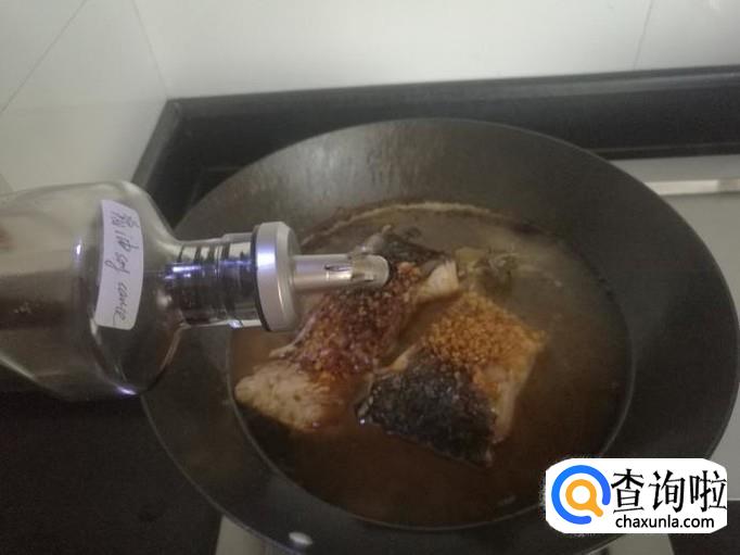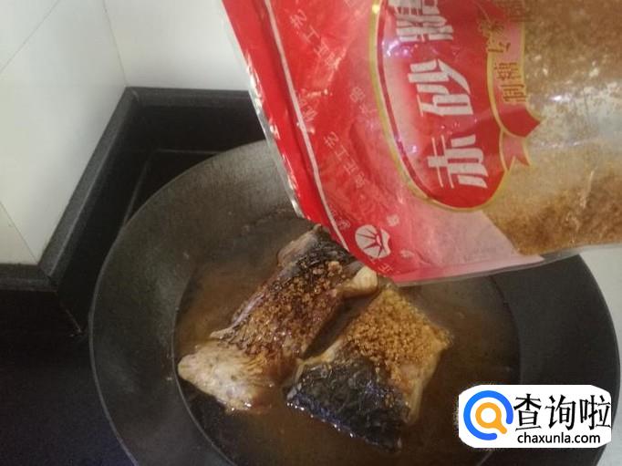 待两边煎到些许金黄的时候,依次放入料酒,老抽,稍微翻个身让鱼段上色,然后依锅沿放水。大多数红烧选择的是白糖,这里红烧选用的红糖,因为红糖的蔗糖成分更高,最后的收汁更粘稠些。