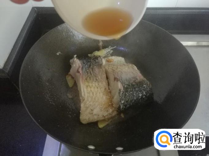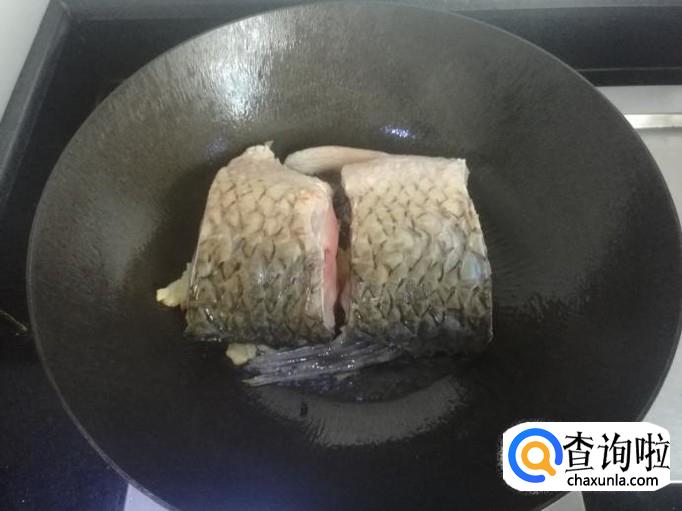 待油烧到八成热左右的时候,将青鱼段放入油中煎炸,因为青鱼不像鲫鱼那么嫩,因此耐得住油煎。