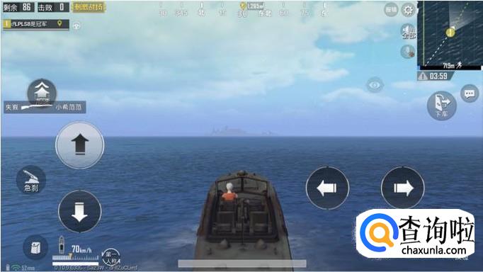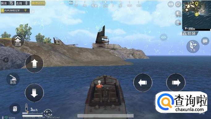 找到船之后,就立刻笔直的朝出生岛开去,一定要把握时间,毒圈可不等人,来到出生岛之后,千万不要把船开到岸上,你还需要靠这个船来逃命呢,开到岸上就等着被毒死吧。如图