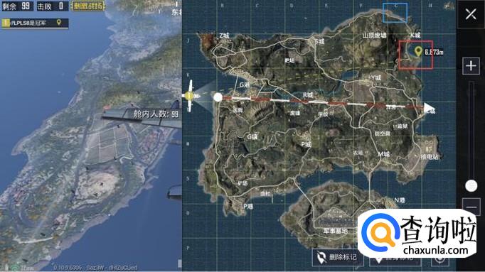 首先,要先看航线如何,如果飞不到右上角海岸区域就不要再去出生岛了,因为你还没有跑到就开始刷毒了。下图所示航线是可以去出生岛的,往红框位置飞,如图。