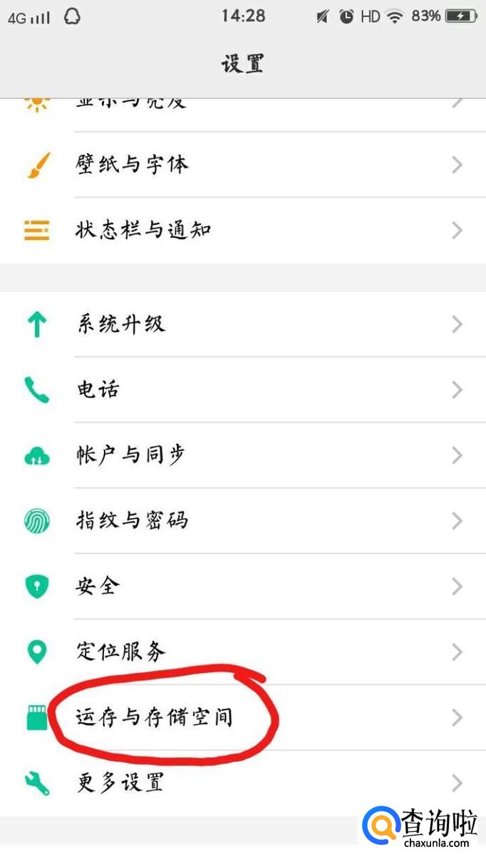 找到“运存与存储空间”之后,点击进入